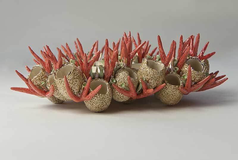 The ceramic forms I make have been influenced by the delicate and fragile nature of the living organisms found in the sea, I like their gentle flowing, how they take shapes and the pattern of their surfaces.