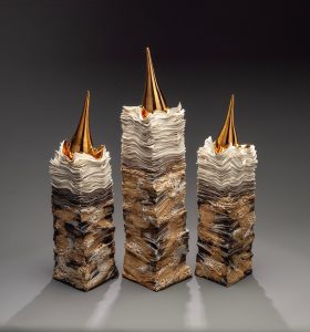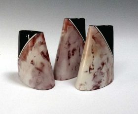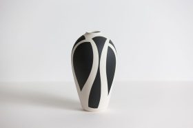 "My vessels explore abstract patterns drawn from nature’s curves and angles. In my pieces I strive to create a visual balance between form and decoration, either individually or in harmony together as a group. Each piece is sanded after firing to create a smooth tactile surface".