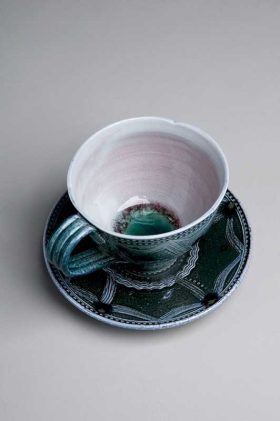 Georgie studied Workshop Ceramics at Harrow from 1993-96. She ran her studio at The Chocolate Factory in Stoke Newington for ten years before moving to Surrey where she now works from a studio in her garden. Margaret Gardiner works in porcelain making decorated and textured domestic ware and individual pieces.