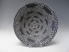 She is currently absorbed in patternmaking using the saggar firing technique, generally known to yield random results. However, through ongoing experimentation, Gaby has developed a saggar technique which allows her to create controlled designs.