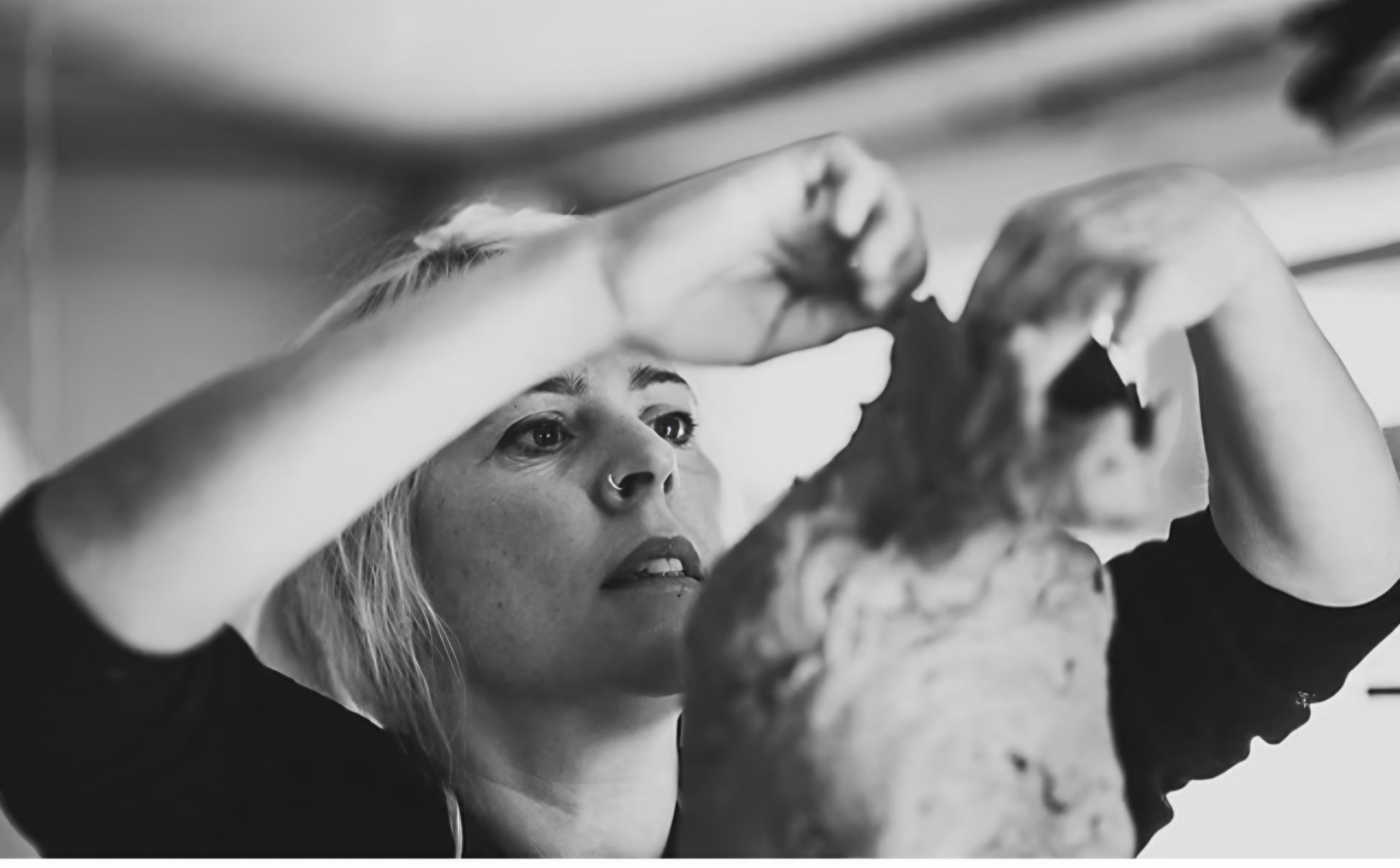 Sharon uses clay as a sculptural medium; a 3D canvas. Preliminary sketches in 2D and drawings from life inform the work, helping ideas evolve. Once in the workshop however, when the clay is being worked with directly, the sculpture is allowed to reveal itself as it is worked with: a conversation with clay.