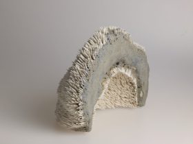 As a ceramicist, I am constantly aware of the way that my body moves. Every move I make is a decision that will lead to the transformation in the clay I work with. I find this has meditative qualities, which in turn is conveyed in the work.The work has a highly visual and tactile surface informed by my love for nature and fine detail. Upon creating these works, I intend to provoke multiple sensory modalities, and thus spark a curiosity within the viewer. My work demonstrates how visual stimuli can be achieved by grouping single elements to form a larger gestalt whole, as reflected throughout nature. Claire produces elegant hand-built sculptural forms and collectable objects inspired by her studio’s location in the grounds of a historical steam museum in London. She creates ceramic components, making structures in a variety of ways, using different clays and incorporating experimental surfaces as she develops her ideas.