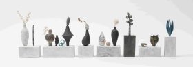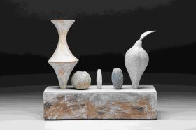 She continues making collections of man-made and natural forms in her studio, which are often incorporated into her work. The discipline of drawing, her continuous sketchbook studies and her passion for printmaking are of prime importance to her. She views the process of the making the ceramic assemblages, akin to collage and delights in that element of chance.