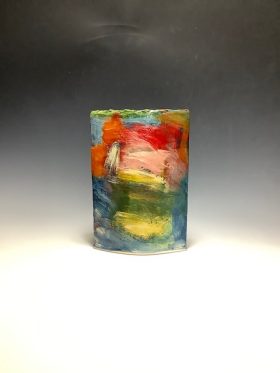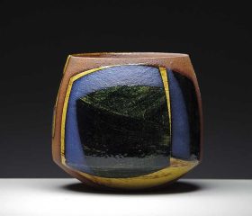 My vessels are thrown, often altered and assembled using slab elements, in a coarse-textured red earthenware with brushed slips and paper resist. Recent pots combine references to our rich pottery traditions, 20th century abstract painting, and the land and seascapes of SW Cornwall. Pots are biscuit fired, selectively stained and wax resisted before glazing and firing to 1120 centigrade in an electric kiln. My work is exhibited widely in the UK and Europe and can be found in collections internationally.