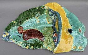 communicates the sculptural qualities of these influences. Her ceramics are instinctively hand-formed in an emotionally intuitive and mindful process using methods such as coiling and pinching. Each piece, a vessel for her emotional journey. John Pollex began making traditional English Slipware in 1971 before moving on to his present style in the mid eighties. His spontaneous and mesmerising use of colour is reflected in the work he is known for today, John describes his process of applying underglaze and slip to the ‘blank canvas’ of each piece as ‘painting rather than decorating’.