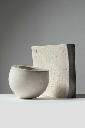 Growing up in communist Poland, my everyday life was underpinned and surrounded by stark, grey concrete structures – brutal, imposing, but unavoidable. This architecture was raw, substantial and woven into the history and fabric of the country and my upbringing. My work finds its foundations in that world, drawing from the same rawness but seeking beauty in the simplicity of form. It’s an aesthetic born of opposites, where darkness meets light, rough meets smooth and drabness conceals drama. The tension between surface and form, the ordered and the organic.