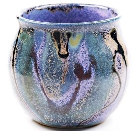 I produce a range of colourful wheel thrown tableware, as well as some larger one-off pieces. The pots are thrown on the wheel and individually decorated with free and abstract designs using multiple layers of colourful stoneware glazes.