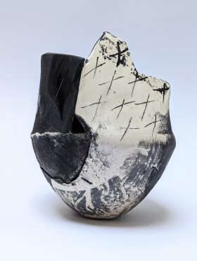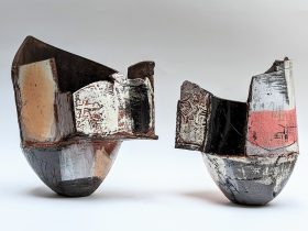 Throughout the 80s and 90s I made colourful tableware. I was the ceramic half of Yerja Ceramics and Textiles, the textile painter, Katherine Ukleja, being my partner. It was a time of prolific production, selling our work in the UK and abroad. However, before making ceramics, I worked in the theatre, and in 2000 with composer Ieuan Einion I set up a new theatre company in Newcastle upon Tyne. Ceramics took a back seat until 2015 when I began an MA in ceramics design. Previously, the emphasis in my work had been on surface decoration, now I sought to find expression through form. Since graduating I have made