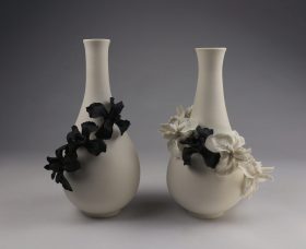 Other projects explore worship of femininity and mortality. The contrast of porcelain elements against Earthenware clay is an attempt to visualise imbalances and fragile harmonies.