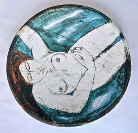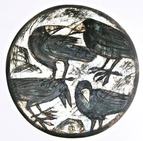 She makes strong sculptural slab-built ceramics with a controlled and defined surface decoration inspired by the figurative: crows, ravens, and the human form, working from her studies and life drawings. Her main artistic influencers are Modigliani, Gauguin, and Picasso among many other great artists.