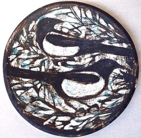 In 1994 Jane moved to rural Co. Clare, Ireland, where she built a house and studio, and applied herself to ceramics. Not attracted to using glazes, and wishing to use her clay forms as a canvas for her drawings and decorative designs, she inscribes directly into the surface of the unfired clay, applying layers of oxides and stains which are re-applied to her multi-fired work, and often sanded down between firings. This gives a depth and texture to her hand-built ceramics.