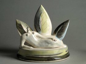 My work is based on a nostalgic representation of some of my earliest memories of the sea. From the wildlife, through to the weather-worn decay of the architecture, and the shipping industry. Old signage and weather-worn decay are key to bringing my sculptures to life. Jenny studied Fine Art in Bristol. After working initially in bronze she started her career in ceramics after moving to Exeter, where she lives and has her studio. She works predominantly in terracotta, specialising in individual hand-built and slip decorated figurative sculptures. These works often reference her fascination with Etruscan tomb sculptures and Staffordshire mantelpiece figurines. They portray figures and animals, enraptured by nature and their surroundings. The mythic and domestic rituals explored in many pieces originate in European folk memory, perhaps influenced by her Scandinavian ancestry.