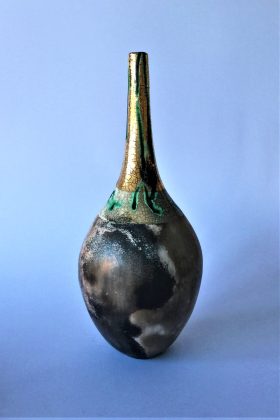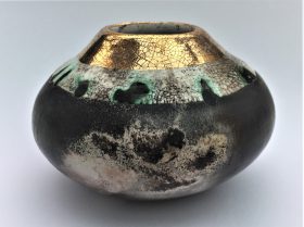 The curves of my vessels have an affinity with the female form and the natural ‘raw’ quality of the colours and textures lends itself to wild landscapes, shimmering lakes and night skies.
